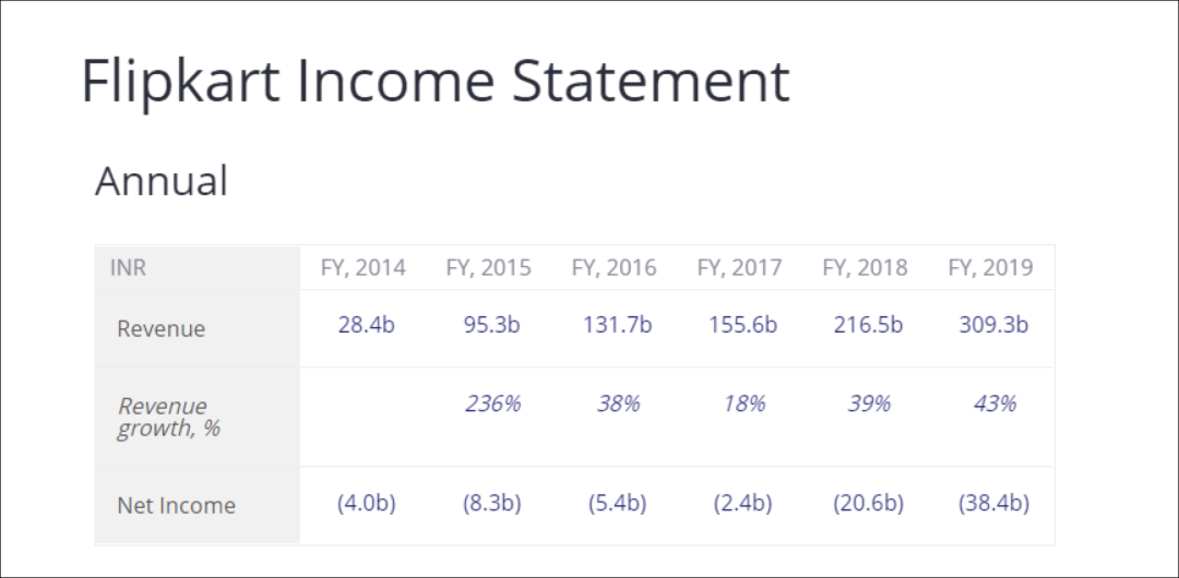 Flipkart最近幾年營收增長情況,圖片來自Craft.co
