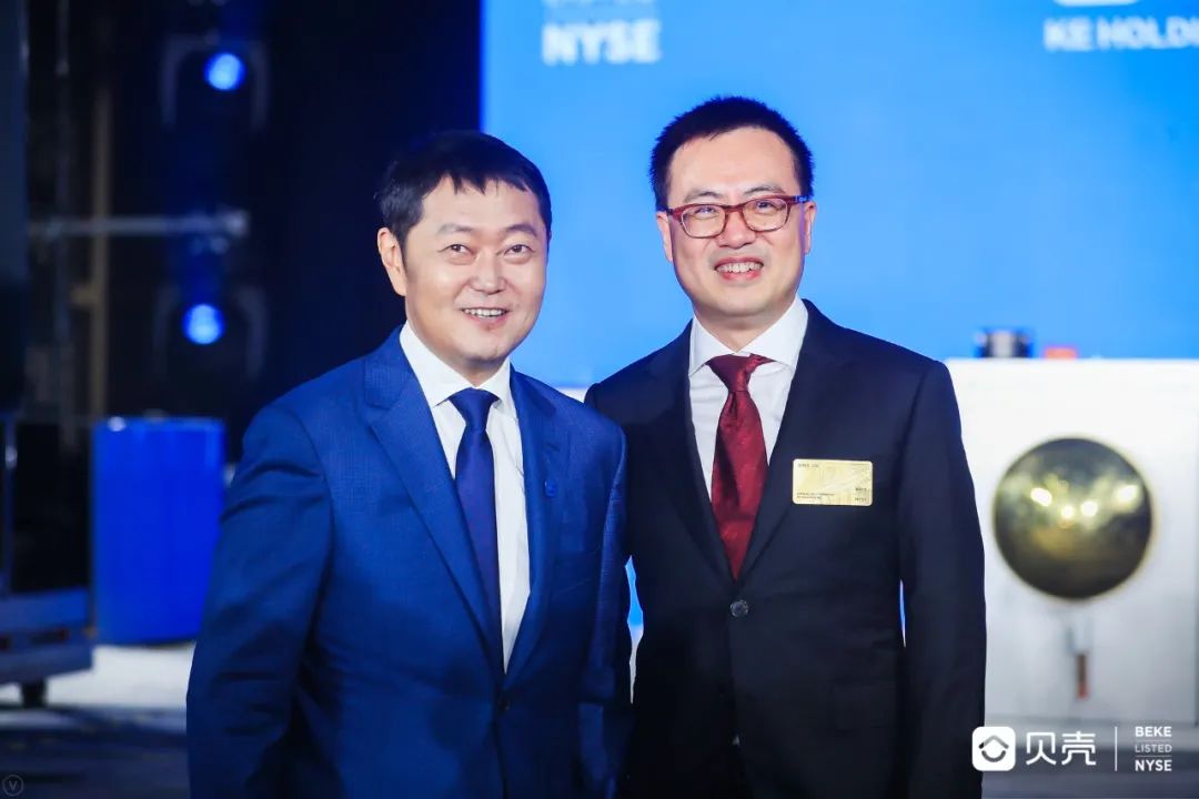 貝殼找房創始人兼董事長左暉(左)與紅杉資本中國基金合伙人劉星(右)在上市儀式現場